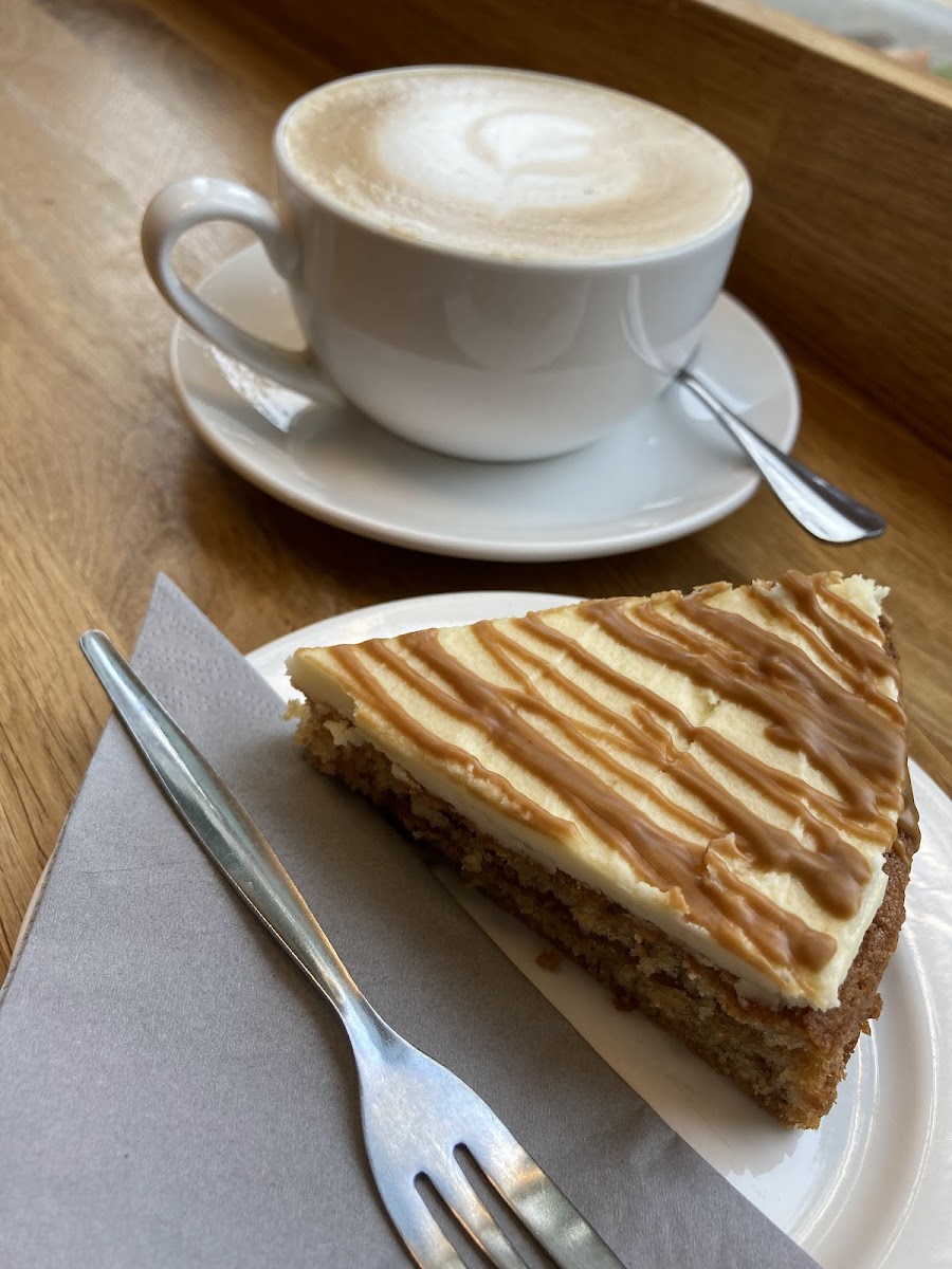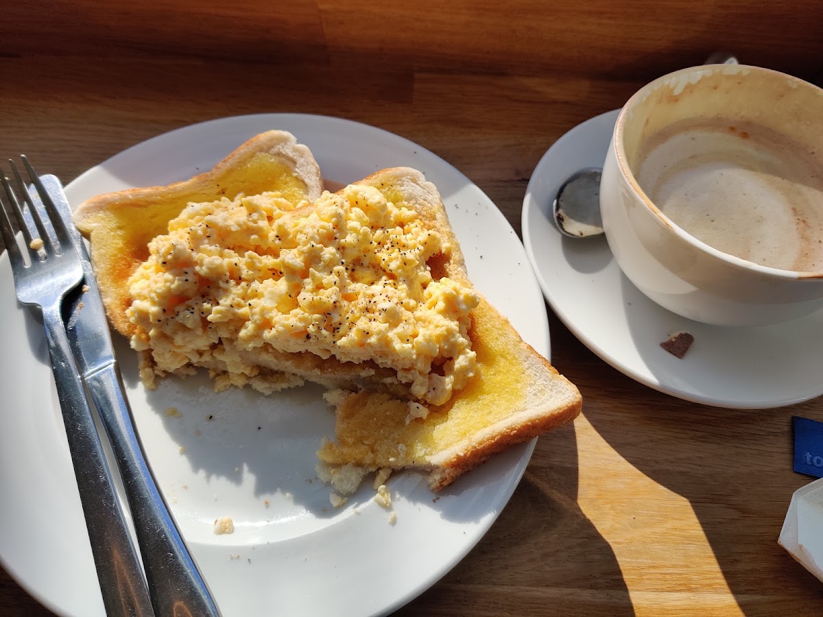 The café is especially well suited for those mornings when you want something comforting and quick, like their scramble eggs on toast or a classic poached eggs on granary toast, often paired with a smooth Americano or a creamy cappuccino to go. The menu leans toward simple, wholesome options with enough variety to include vegan choices and homemade cakes, making it accommodating for different tastes and dietary needs.